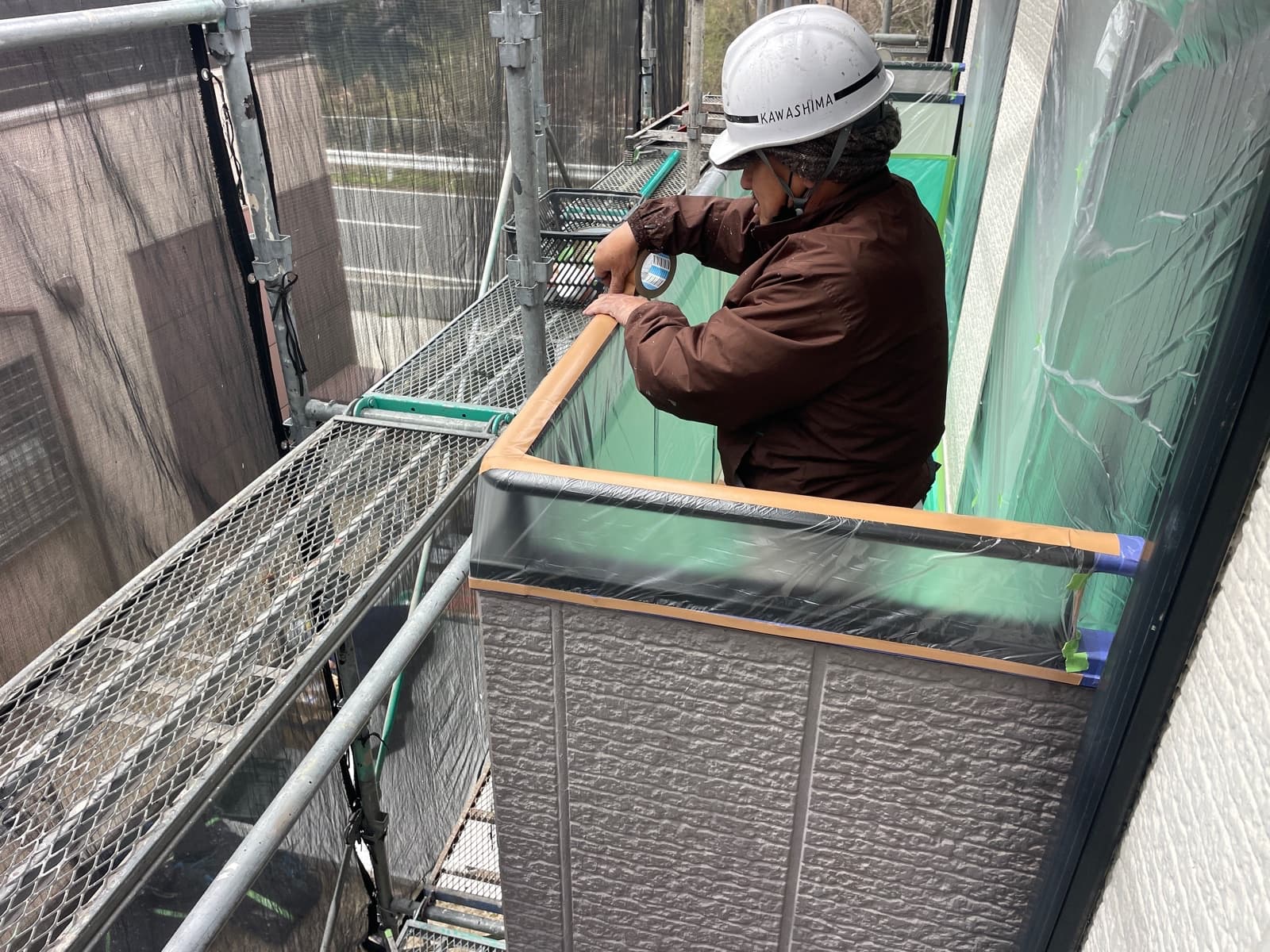 本日はシーリング工事、養生、屋根補修をさせて頂いております。