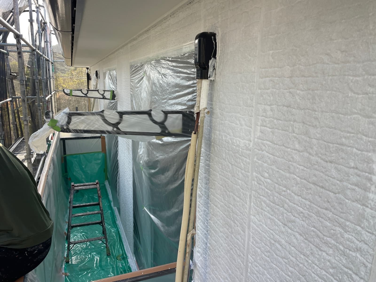 本日は外壁下塗り2回目、中間検査、付帯部塗装、屋根下塗り1回目をさせて頂いております。