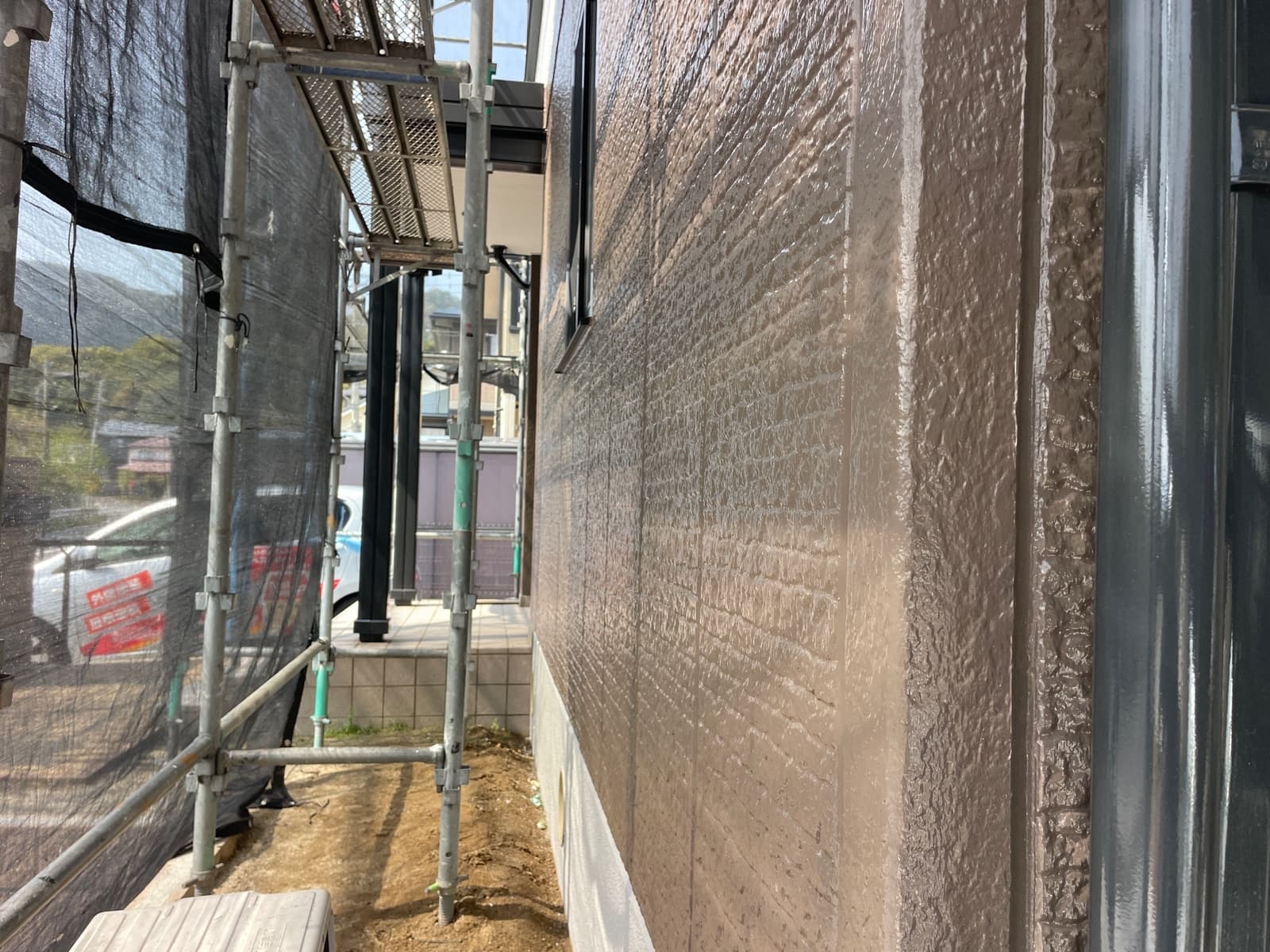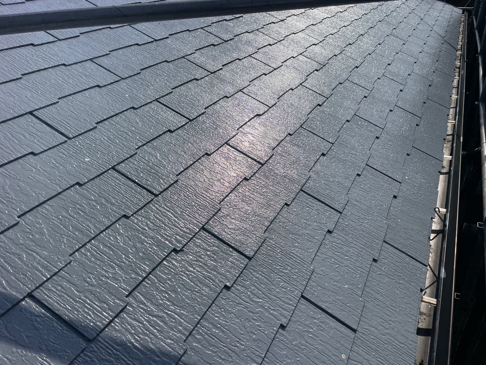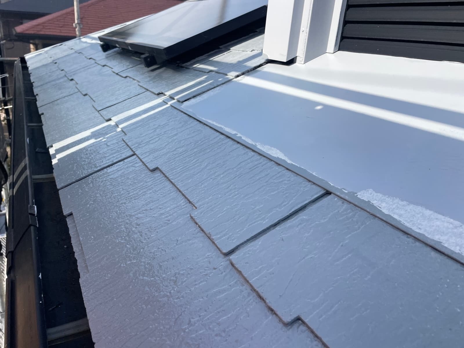 本日は外壁上塗り2回目、付帯部塗装、屋根上塗り1回目をさせて頂いております。