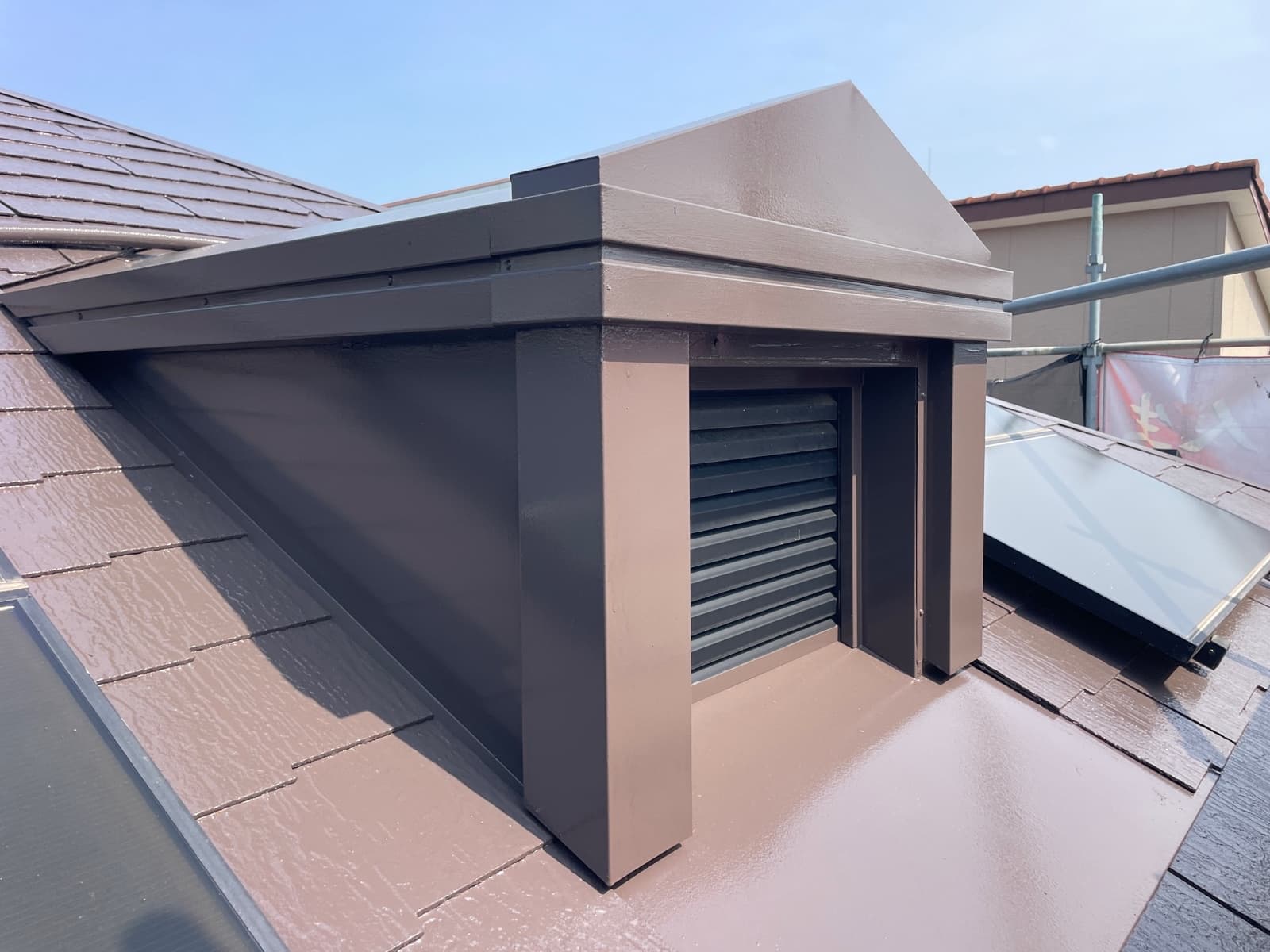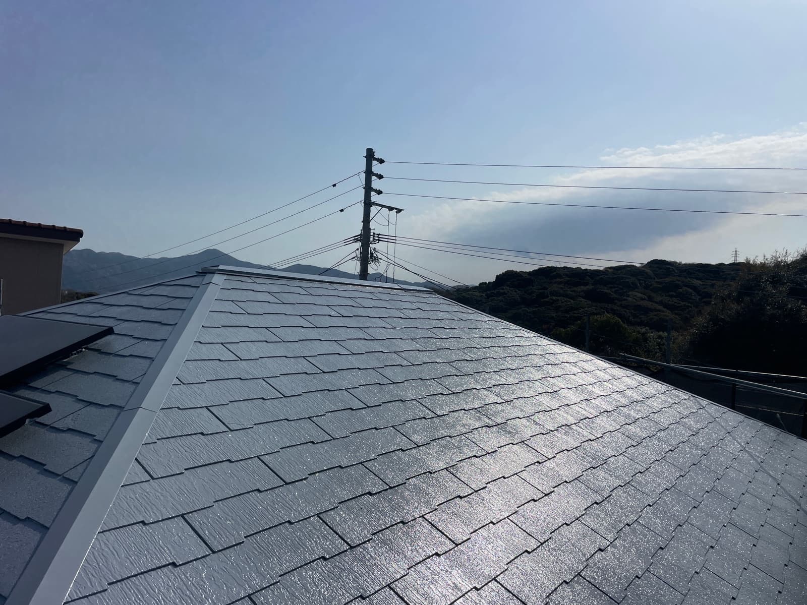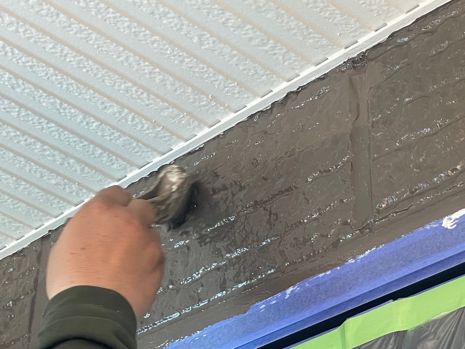 本日は外壁上塗り2回目、付帯部塗装、屋根上塗り1回目をさせて頂いております。