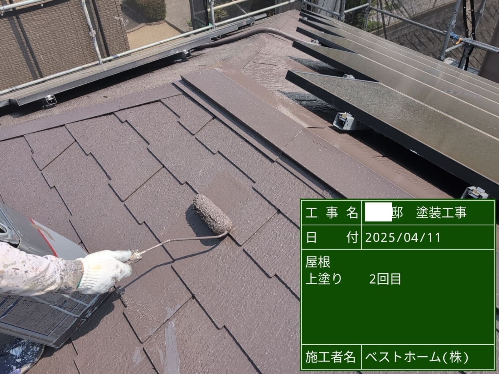 次回施工・・・屋根上塗り1回目、外壁上塗り2回目など