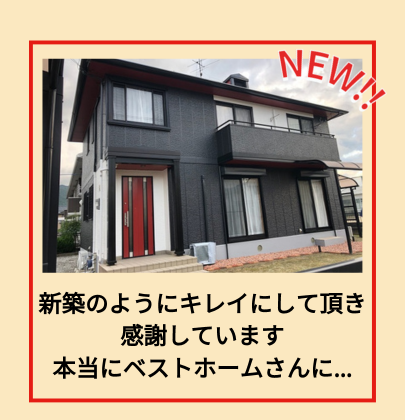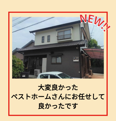 今回は家の外壁の一部の張替えをして頂きました。後で傷んでいた雨よけの庇の付け替え等、その場で、ベストホームの担当の方や職人さんにより良くして貰いました。職人さんもとても丁寧に仕事をして頂きました。又何かあれば是非お願いしたいと思います。有難うございました。