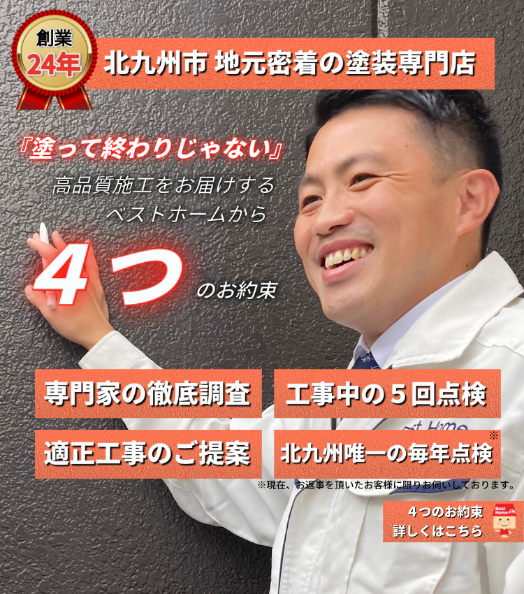 創業以来24年、福岡県北九州市を中心に外壁塗装・屋根塗装・防水工事・リフォーム工事を行っております。