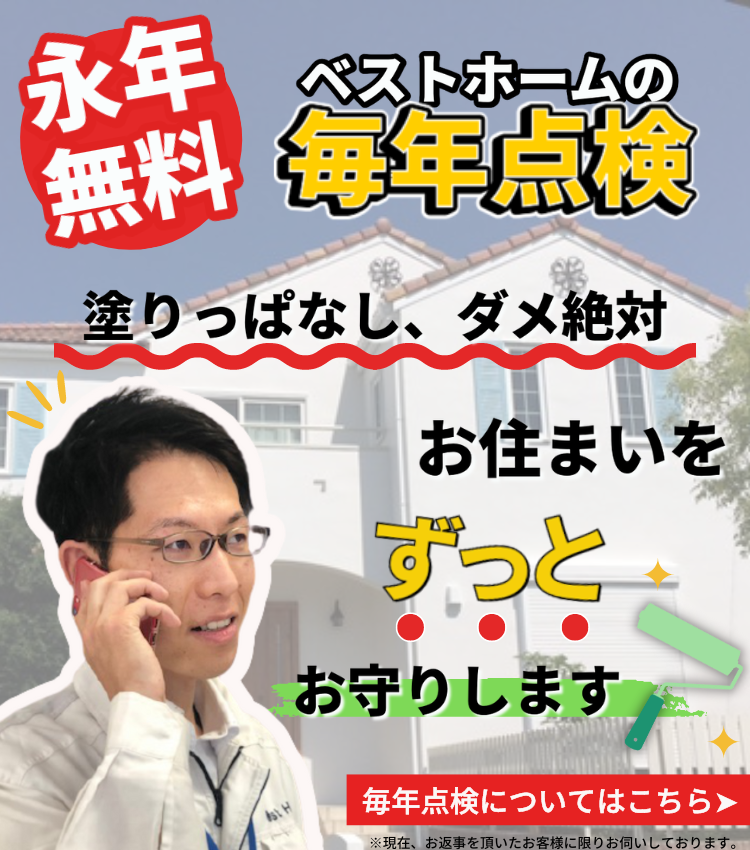 いち早くお住まいのSOSに気付くためにも、ベストホームは毎年点検に伺っております!