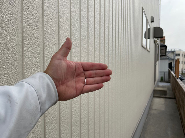塗装を行い4年が経過しておりますが剥がれ、色褪せもなくキレイに保たれていました!劣化によるチョーキングも起こっていません!