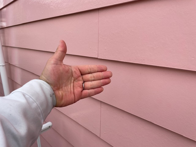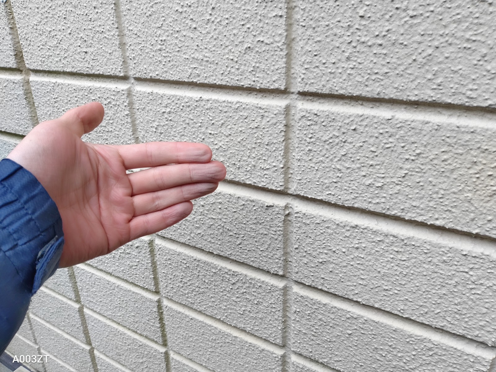 経年劣化により日の当たる面は〈チョーキング現象〉が発生し、防水効果が低下しておりました。