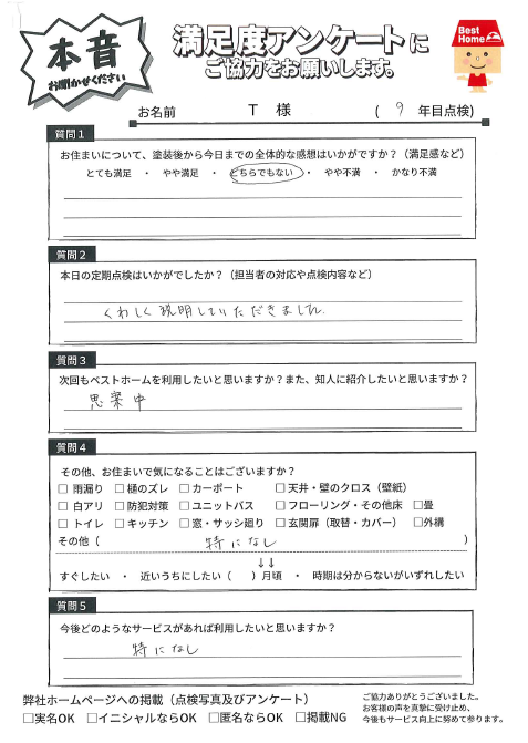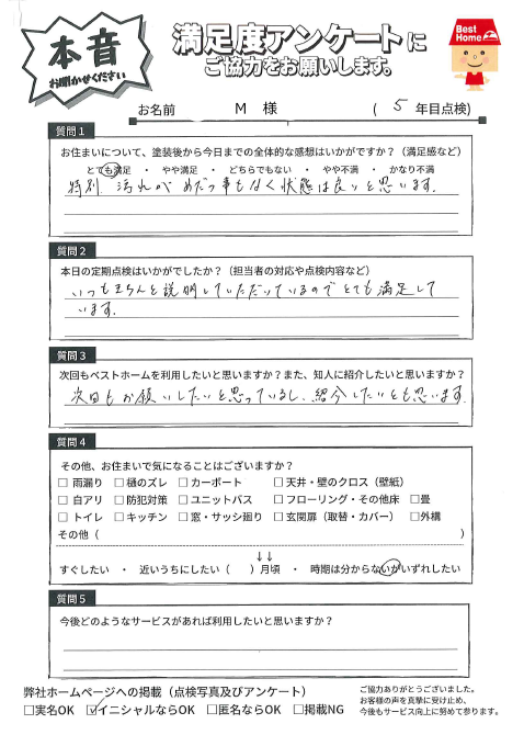 粕屋郡宇美町貴船 M様邸<5年目点検> 担当:戸髙