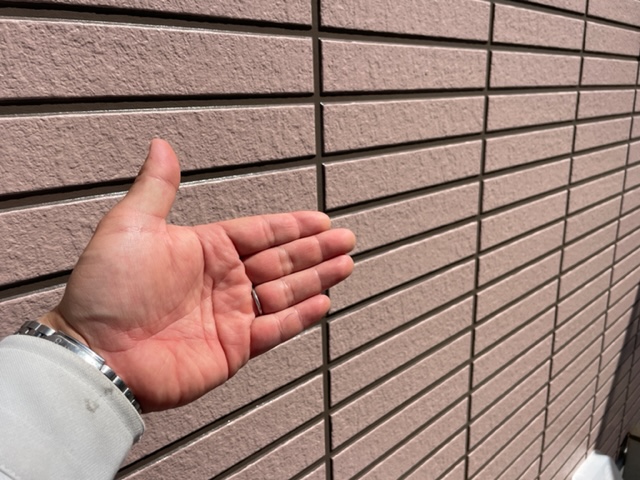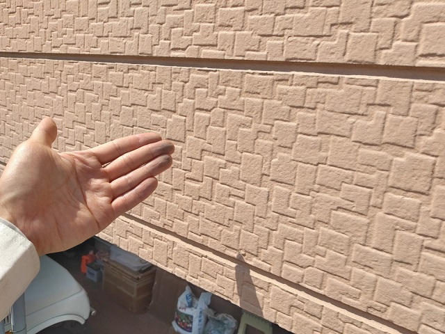 塗装から9年が経っておりますので、経年劣化による〈チョーキング現象〉がみられました。