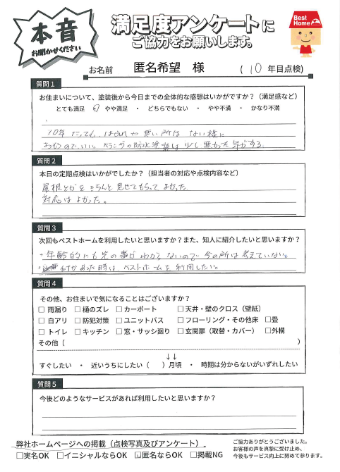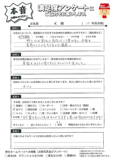 来年の10年目点検も引き続きお伺いさせていただきます!