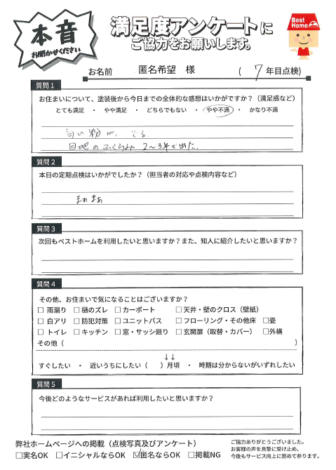 行橋市北泉 匿名希望様邸<7年目点検> 担当:嶋川
