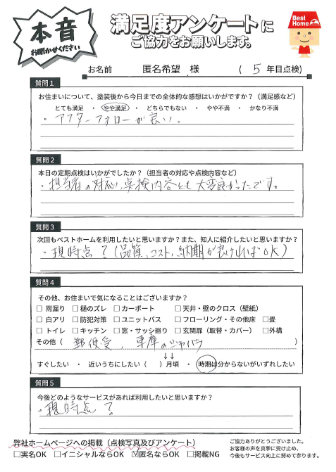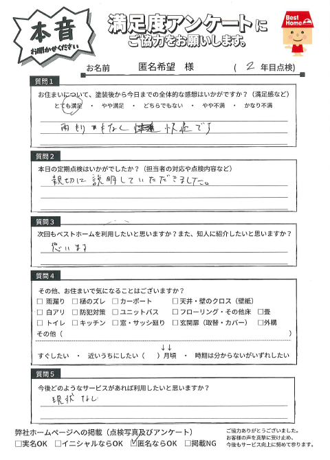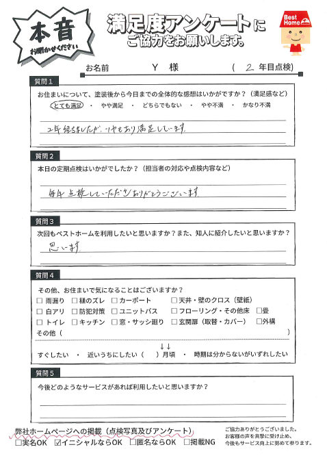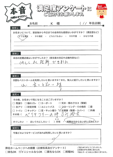 来年の4年目点検も引き続きお伺いさせていただきます!