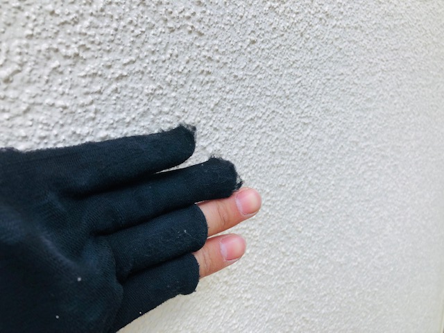塗装から8年が経過しているため、経年劣化による〈チョーキング現象〉がみられます。