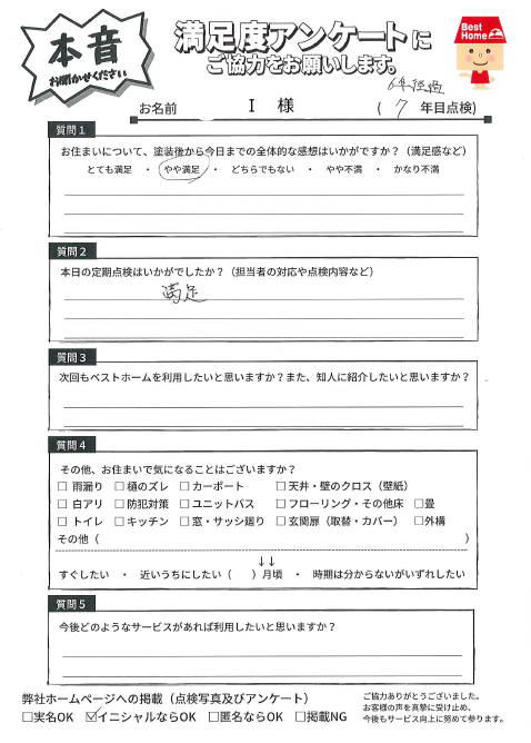 来年の7年目点検も引き続きお伺いさせていただきます!