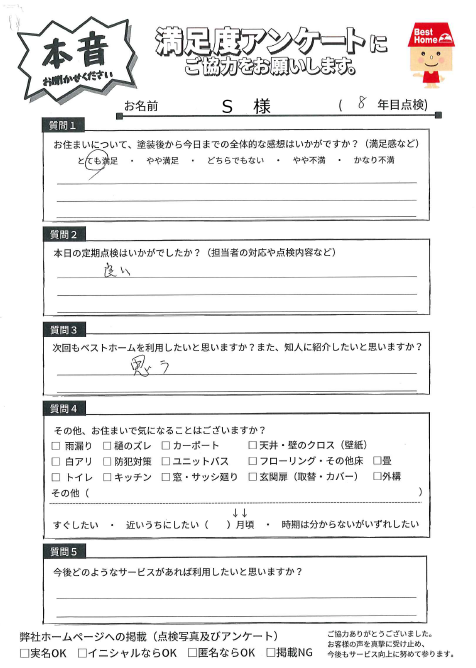 来年の8年目点検も引き続きお伺いさせていただきます!