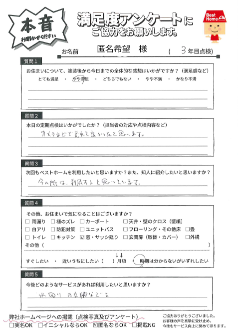 北九州市小倉南区企救丘 匿名希望様邸<3年目点検> 担当:嶋川