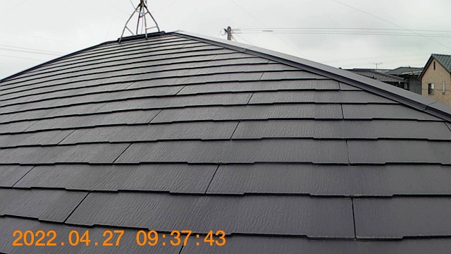 屋根は雨や紫外線からお住まいを守ってくれるので一番劣化が早い部位になりますが、5年経過しても剥がれ、色褪せもなく塗装したての状態を維持していました!