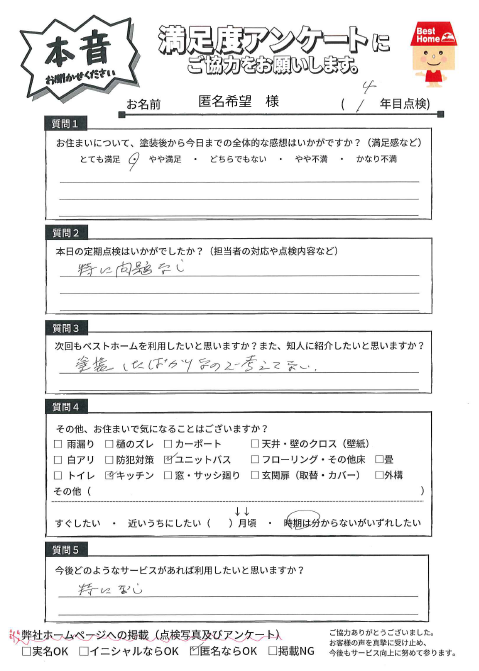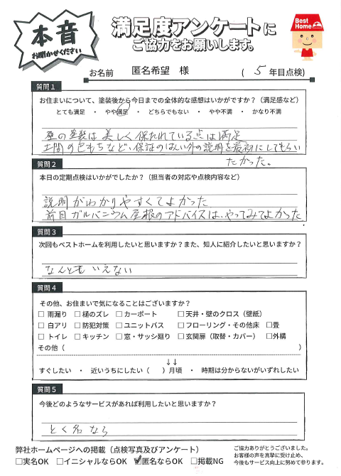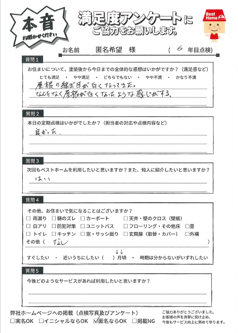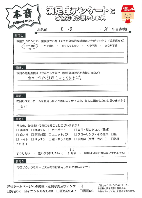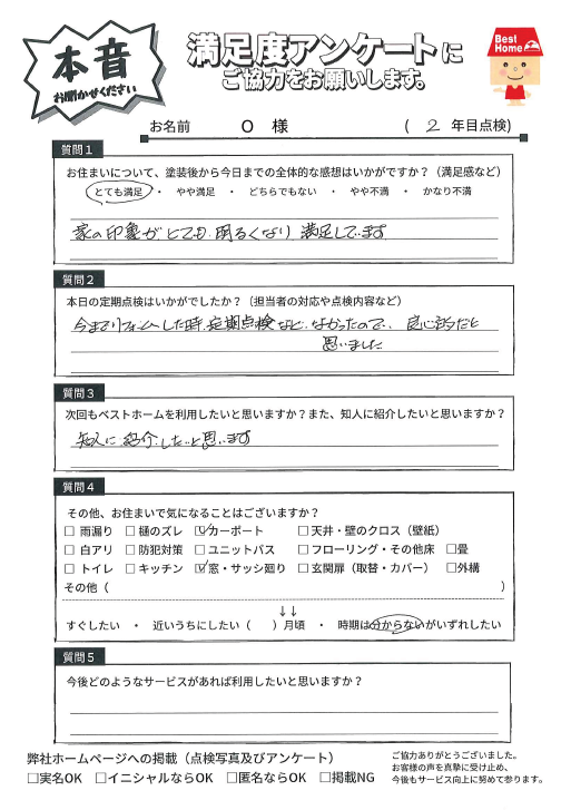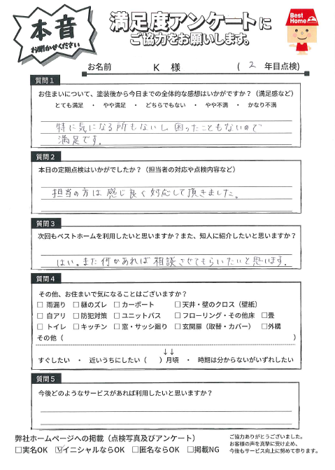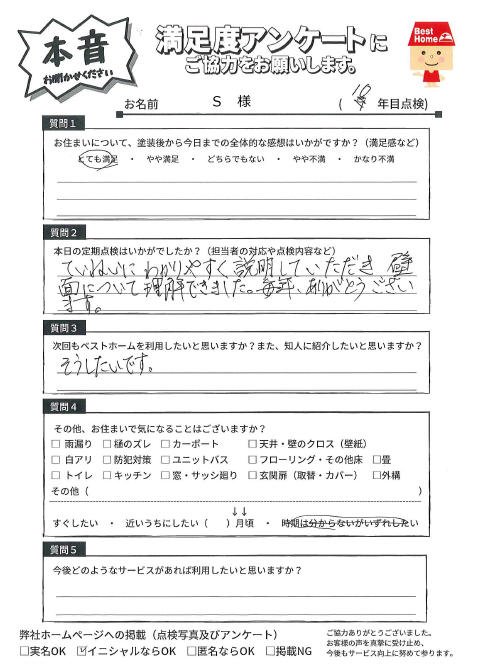 来年の5年目点検も引き続きお伺いさせていただきます!