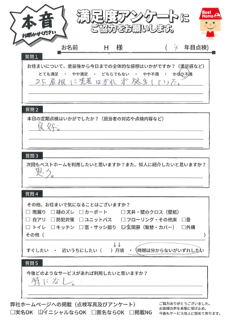 北九州市門司区柳町H様邸<4年目点検> 担当:長江