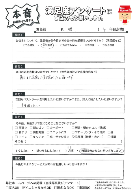 北九州市若松区高須西K様邸<4年目点検> 担当:長江