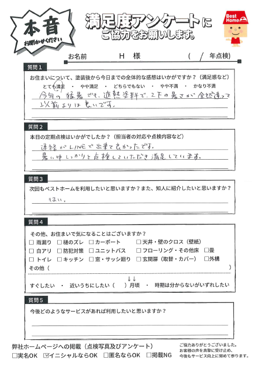 福岡市東区香椎台匿名希望様邸<5年点検> 担当:戸髙