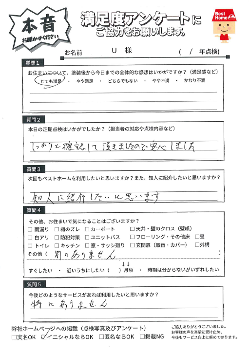 来年の5年点検も引き続きお伺いさせていただきます!