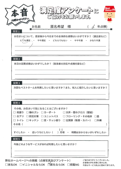 春日市下白水南匿名希望様邸<6年点検> 担当:戸髙