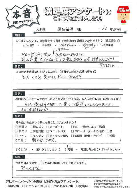 塗装後の満足度アンケート