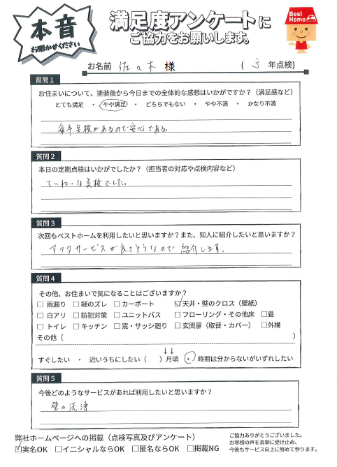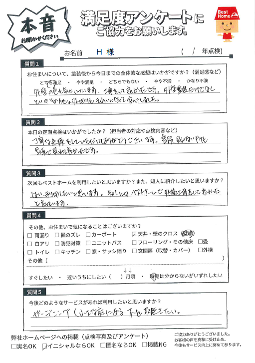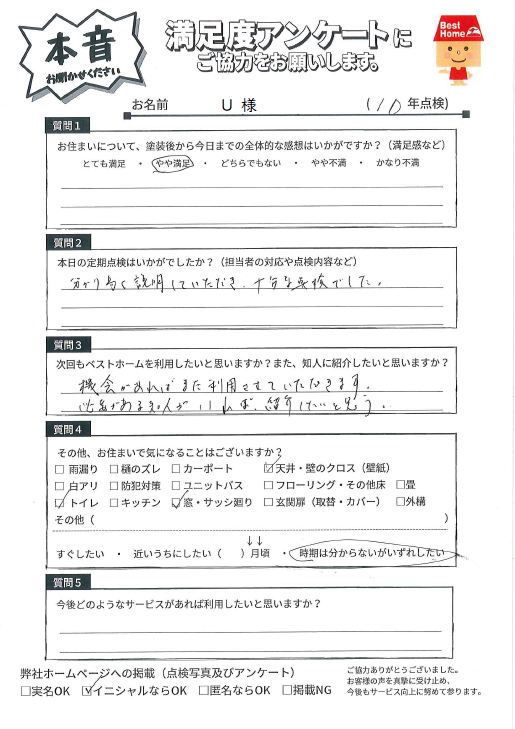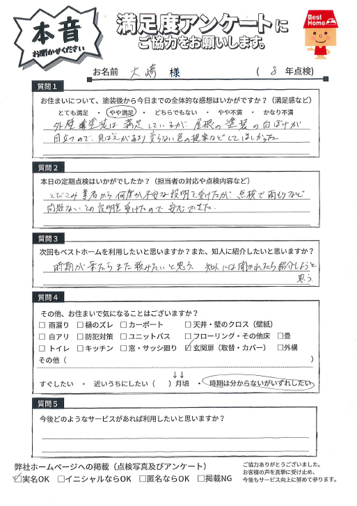 何かご要望がありましたら、いつでもお気軽にご相談ください。来年の9年点検も伺いますので、今後ともよろしくお願いいたします!