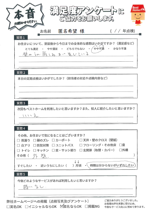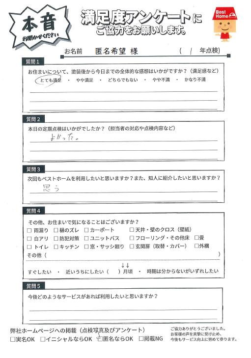 塗装後の満足度アンケート