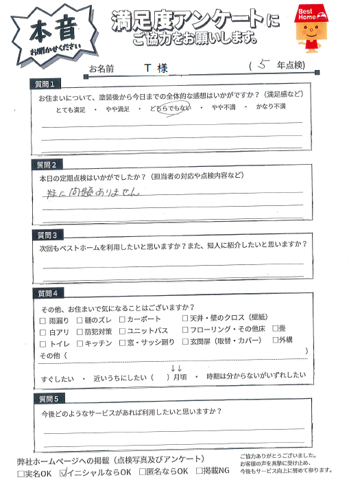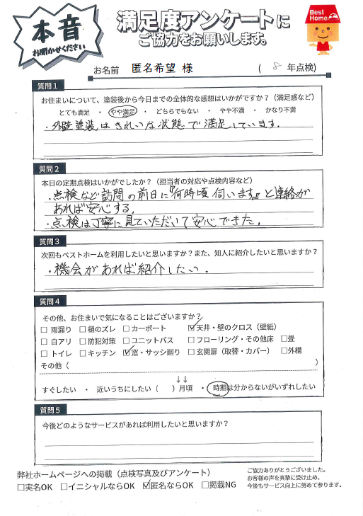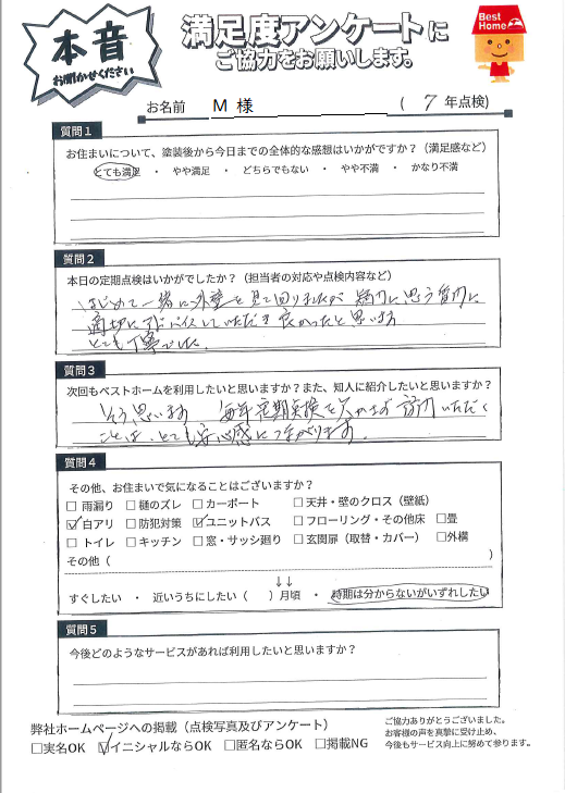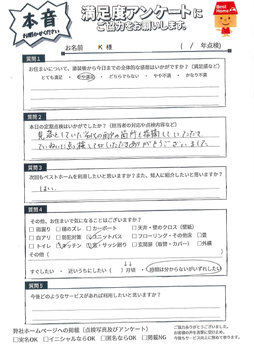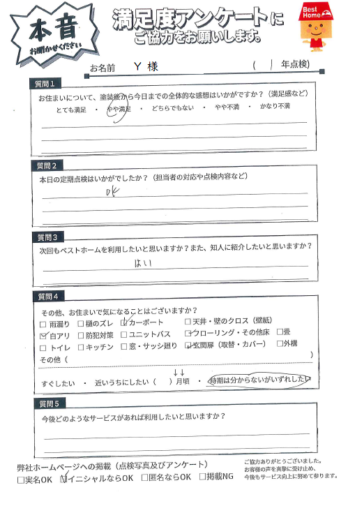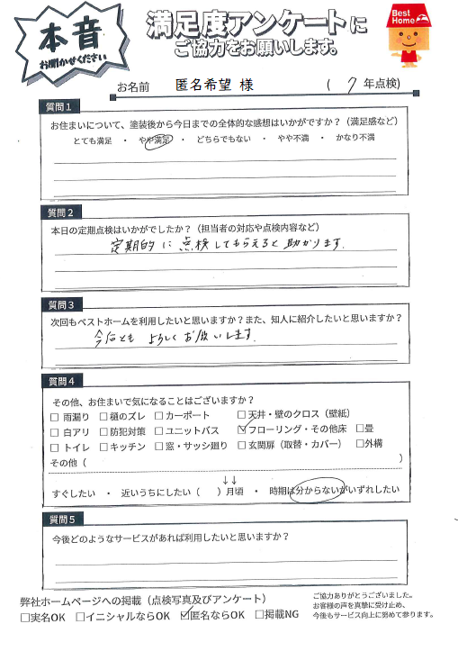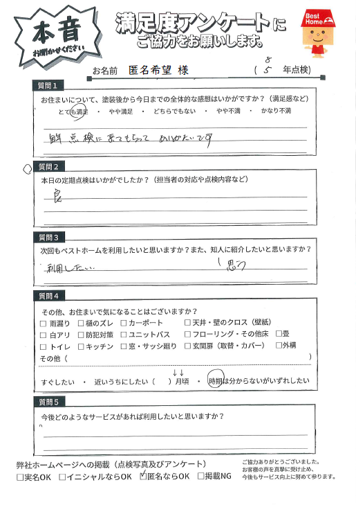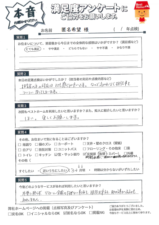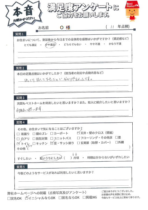 他にも何かご要望がありましたら、いつでもお気軽にご相談ください。来年の9年点検も伺いますので、今後ともよろしくお願いいたします!