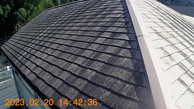 屋根は雨や紫外線からお住まいを守ってくれるので一番劣化が早い部位ですが、3年経過しても剥がれ、色褪せもなく塗装したての状態を維持していました!