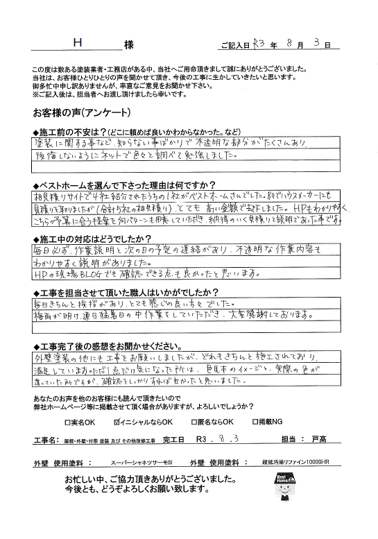 外壁塗装の他にも工事をお願いしましたが、どれもきちんと施工されており