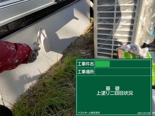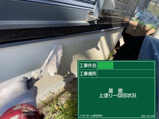 | 施工箇所 | 屋根・外壁・破風板・鼻隠し・軒天・小庇・雨樋・窓シャッター・シャッターBOX・ ダクトカバー・土台水切り・基礎・ボードシーリング打替え・クラック補修 |