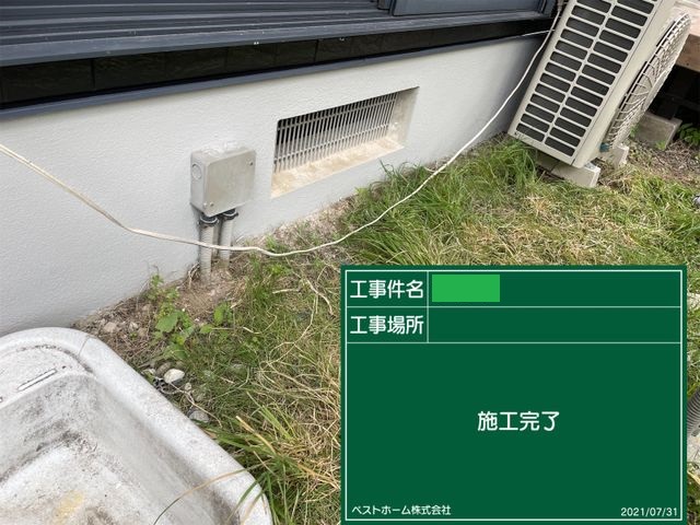 | その他工事 | 樋一部交換・シロアリ予防工事(薬剤散布)・洗面所クッションフロア張替え |