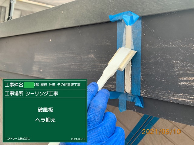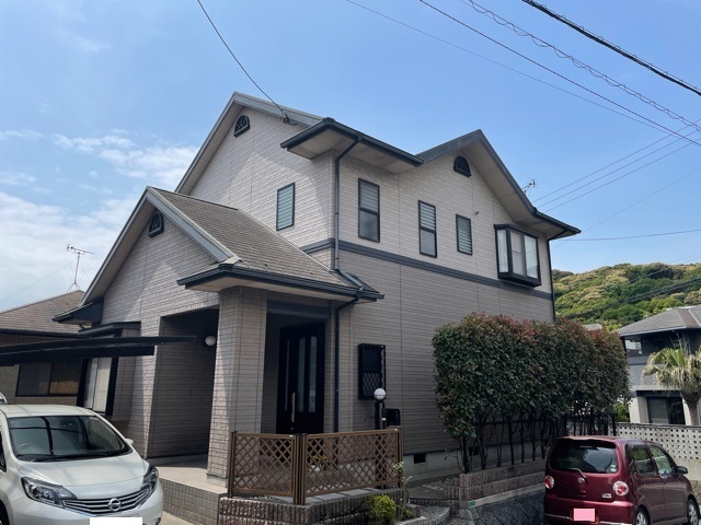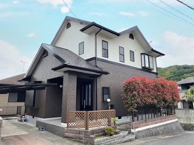 | 施工箇所 | 屋根・外壁・破風板・鼻隠し・軒天・小庇・胴差し・ボードシーリング打替え・雨樋・窓シャッター・シャッターBOX・ダクトカバー・土台水切・ベランダ床・基礎 |