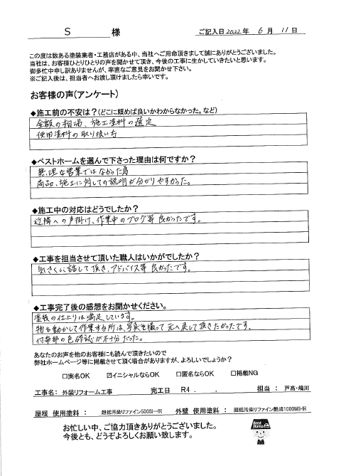 | 担当 | 営業:戸髙 / 現場管理:嶋川 / 職人:佐藤 |