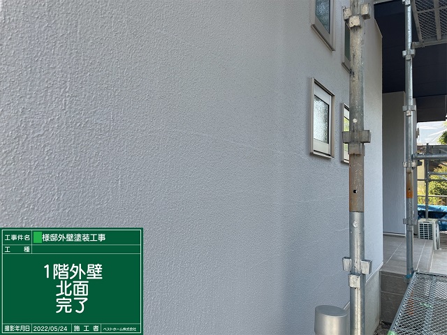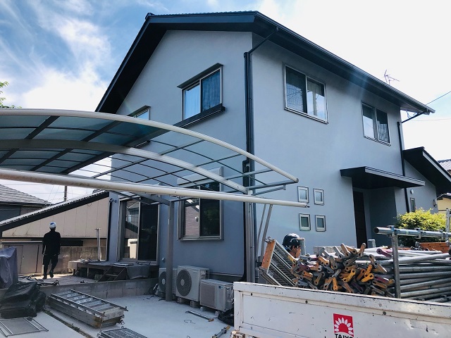 | 施工箇所 | 外壁・屋根・破風・鼻隠し・軒天・小庇(玄関)・クラックコーキング・木部(鉄部)・雨樋・シャッターBOX・ダクトカバー・水切り |