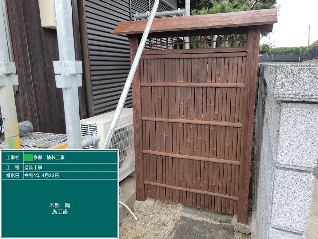 | 施工箇所 | 木壁・漆喰壁・破風・鼻隠し・軒天・桁・柱・雨樋・雨戸・戸袋・ダクトカバー・基礎 |
