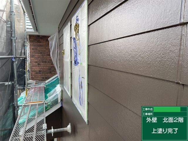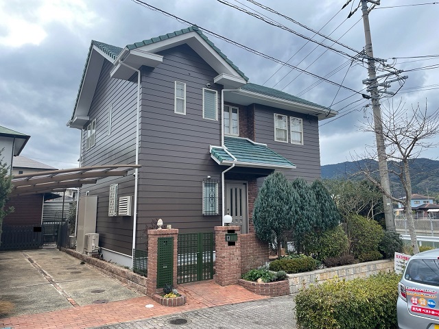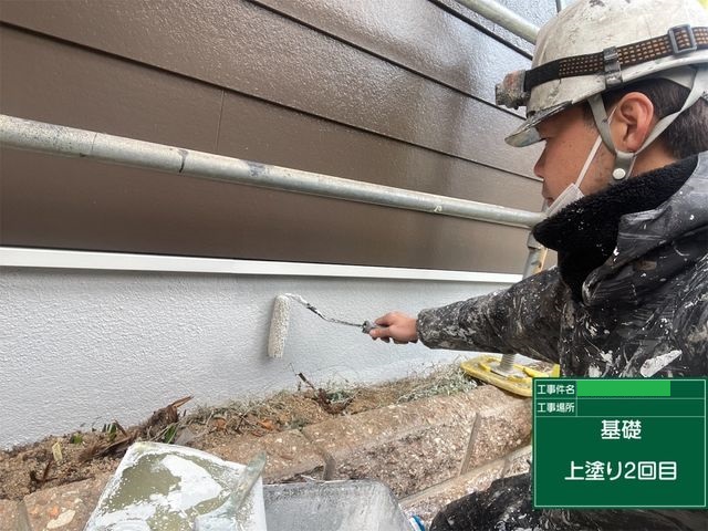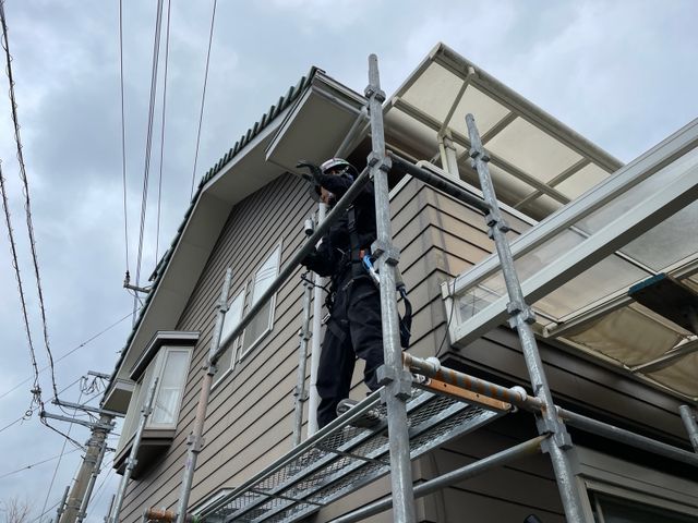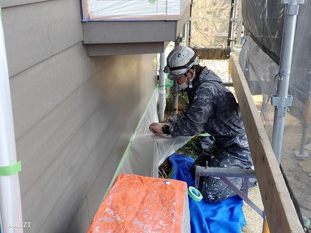 | 施工箇所 | 外壁・破風・鼻隠し・軒天・小庇・ボードシーリング(打替え)・雨樋・ 窓シャッター(清掃)・シャッターBOX・土台水切り・玄関柱・門扉・ その他鋳物・ベランダ床・基礎・物置 |