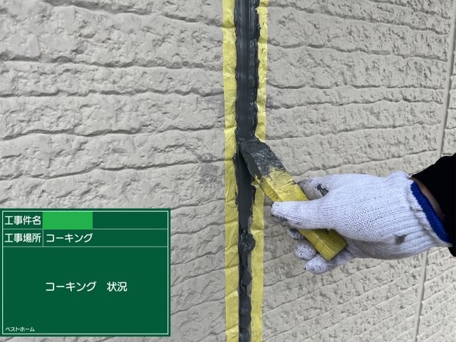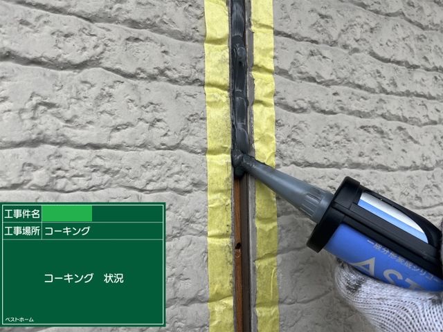 養生を剥がしたらシーリング工事完了です。シーリングが十分に乾いてから塗装作業にうつります。