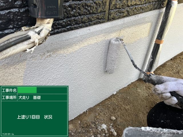 基礎専用塗料を塗布し、コンクリートのひび割れを防ぎます。