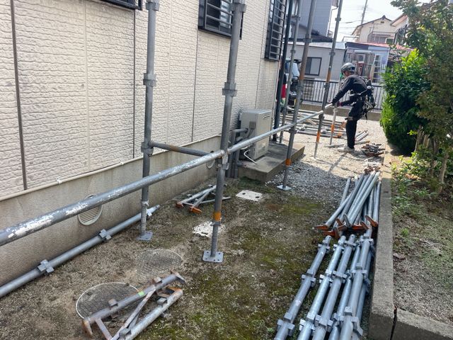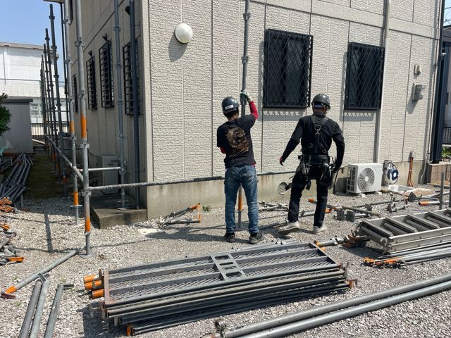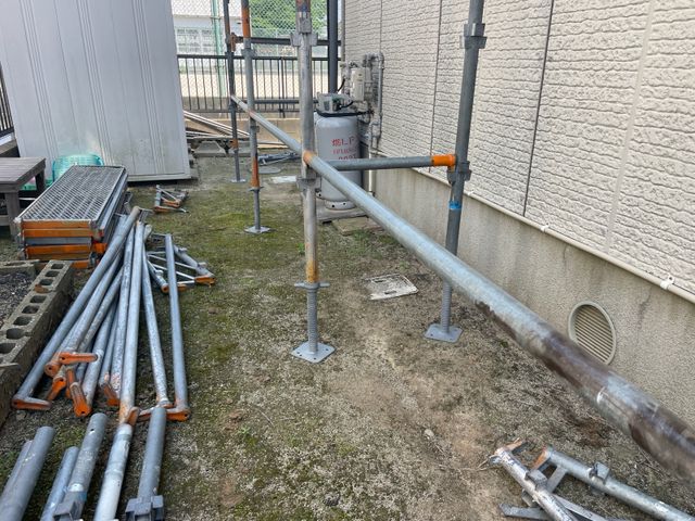 足場をどこにどのように設置するか、現場管理と足場屋さんで入念に下見と打ち合わせを行います。