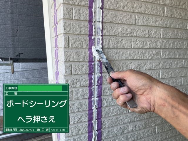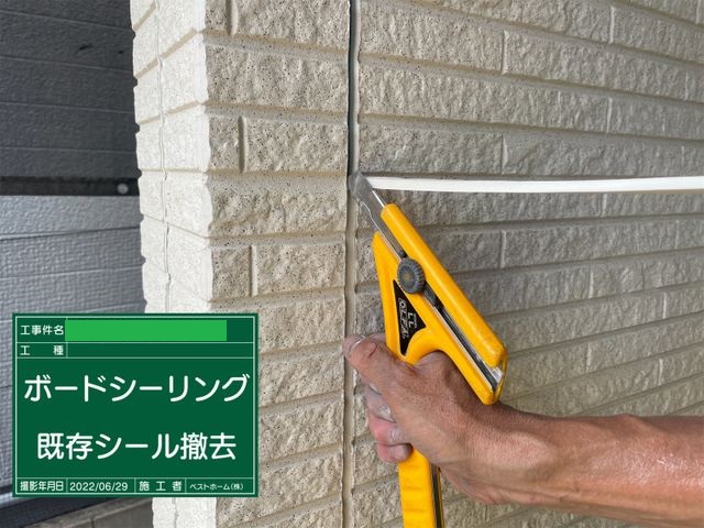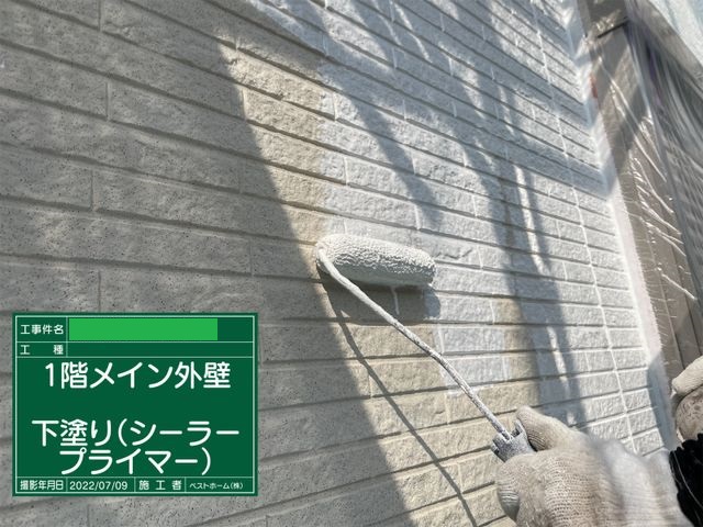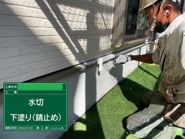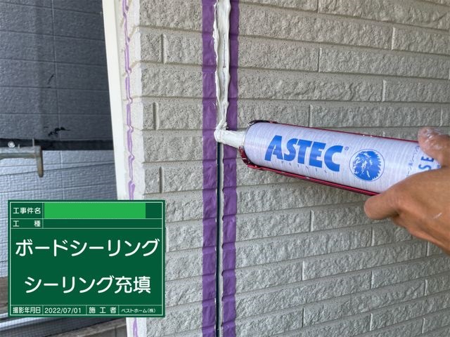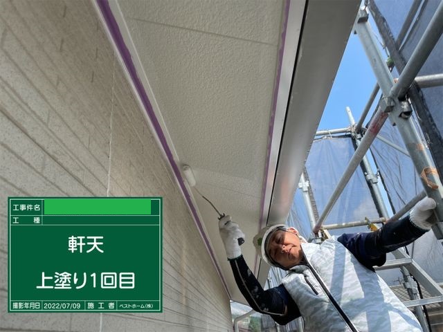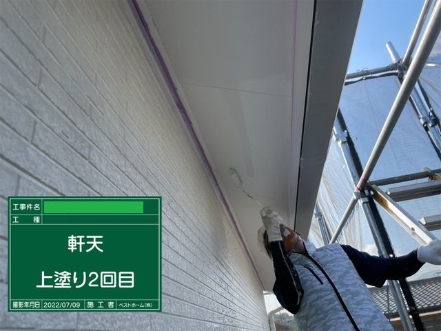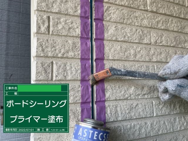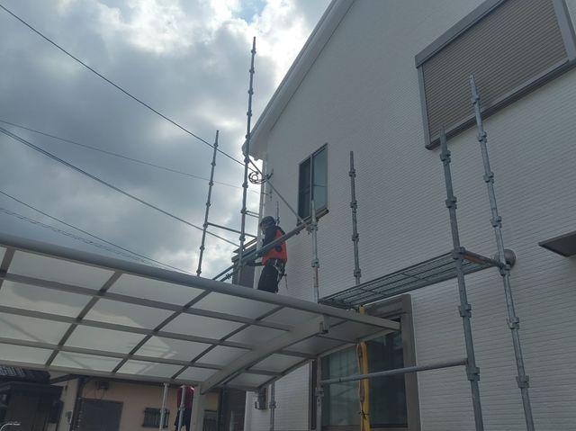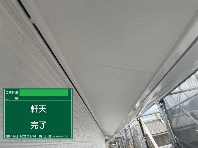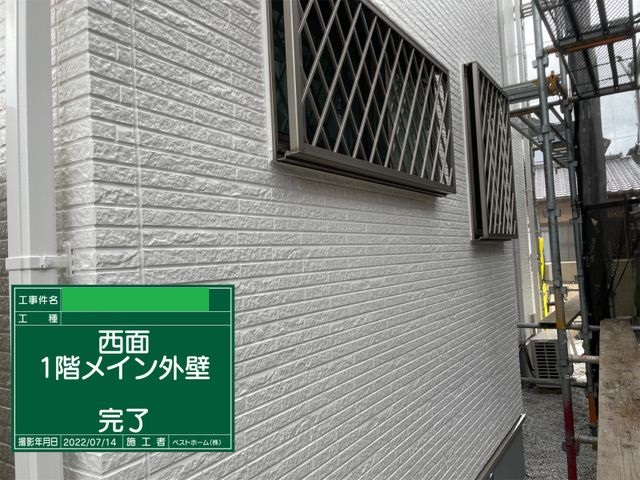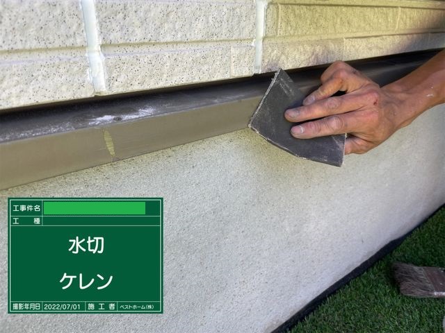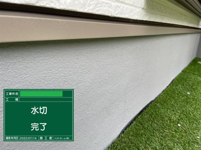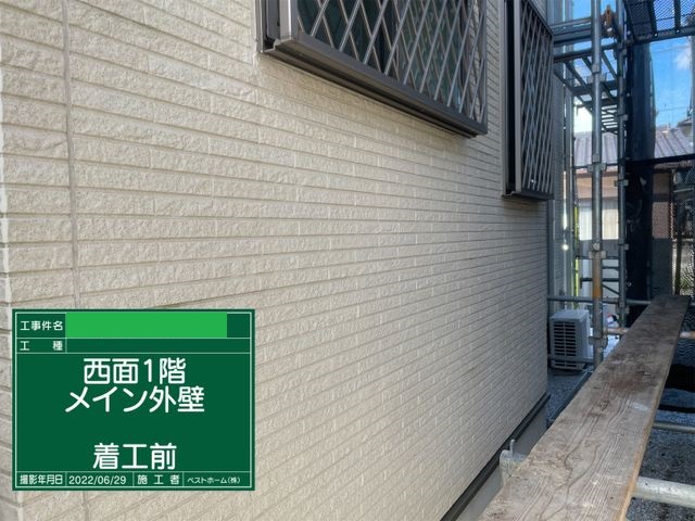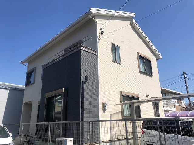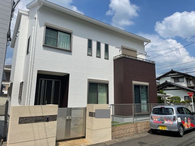 | 施工箇所 | 外壁・破風・鼻隠し・軒天・小庇・ボードシーリング打ち替え・クラックコーキング・ 雨樋・窓シャッター(磨きのみ)・シャッターBOX・ダクトカバー・水切り・外構塀・ 基礎 |