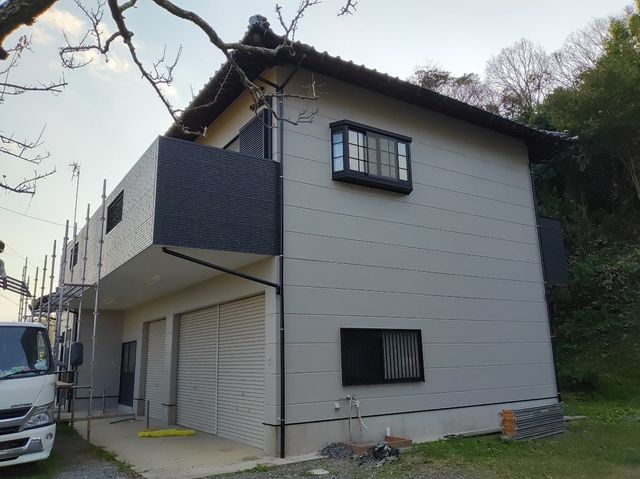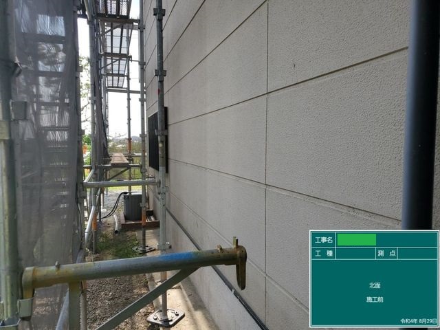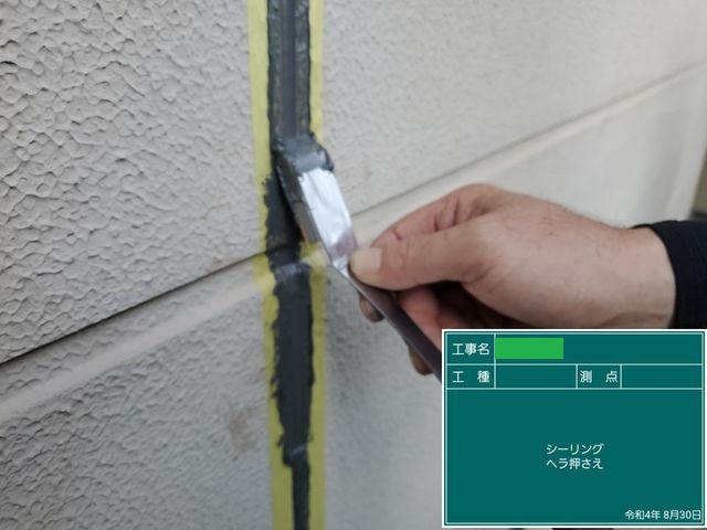 | 施工箇所 | 外壁・破風・軒天・小庇・ボードシーリング打ち替え・クラックコーキング・ 軒天(木)・桁・雨樋・雨戸・戸袋・ダクトカバー・土台水切り・屋根水切り・ 笠木・照明器具・ベランダ床 |