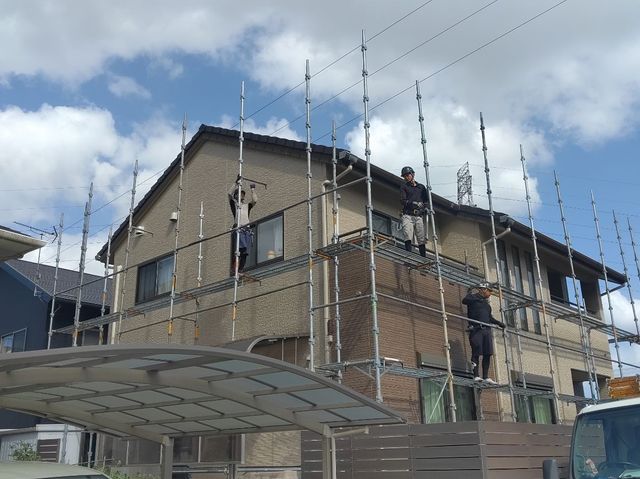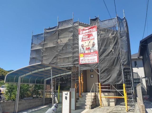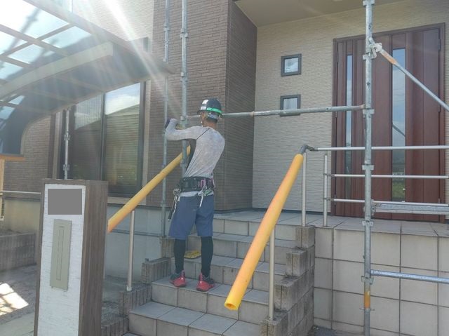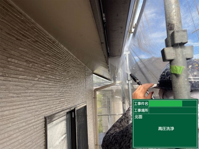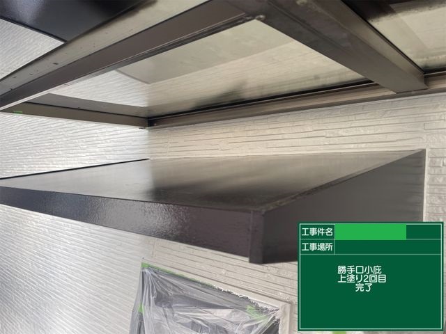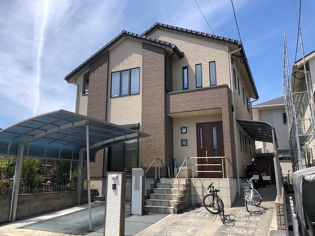 | 施工箇所 | 外壁・破風・鼻隠し・軒天・小庇・ボードシーリング打ち替え・雨樋・ 窓シャッター(磨き)・シャッターBOX・ダクトカバー・水切り・ 外構塀・ベランダ床・基礎 |
