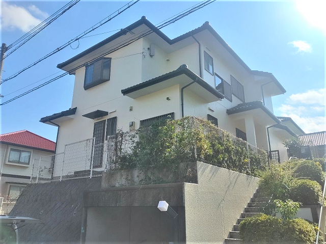 | 施工箇所 | 外壁・屋根・破風・鼻隠し・軒天・小庇・クラックコーキング・フード・雨樋・雨戸・ ダクトカバー・土台水切り・外構塀 |