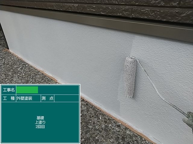 | 施工箇所 | 外壁・屋根・破風・鼻隠し・軒天・小庇・ボードシーリング打ち替え・雨樋・ 窓シャッター(磨きのみ)・シャッターBOX・ダクトカバー・土台水切り・ 屋根水切り・外構塀・ポスト受け・ベランダ床・基礎 |