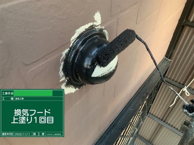 | 施工箇所 | 外壁・破風・鼻隠し・軒天・小庇・胴差し・ボードシーリング打ち替え・ クラックコーキング・雨樋・雨戸・ダクトカバー・土台水切り・屋根水切り・ ベランダ床・基礎 |