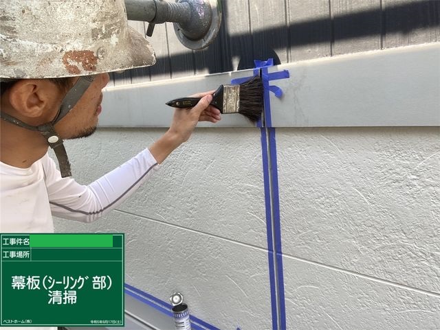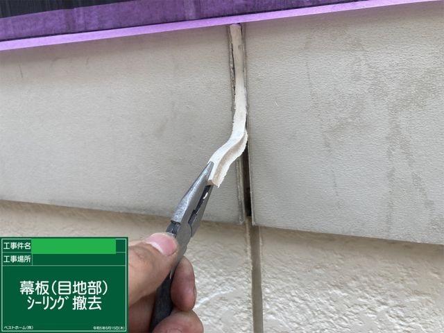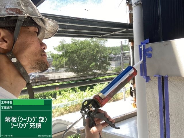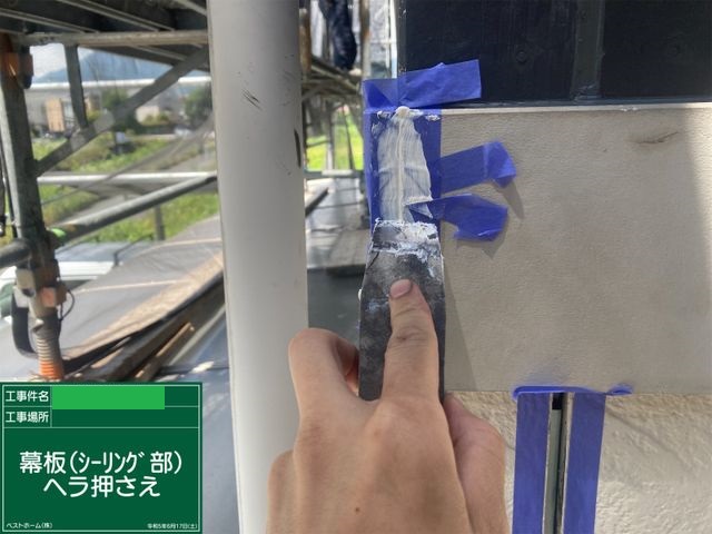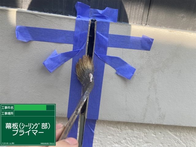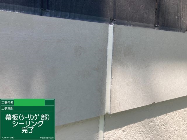 養生を剥がしたらシーリング工事完了です。シーリングが十分に乾いてから塗装作業にうつります。