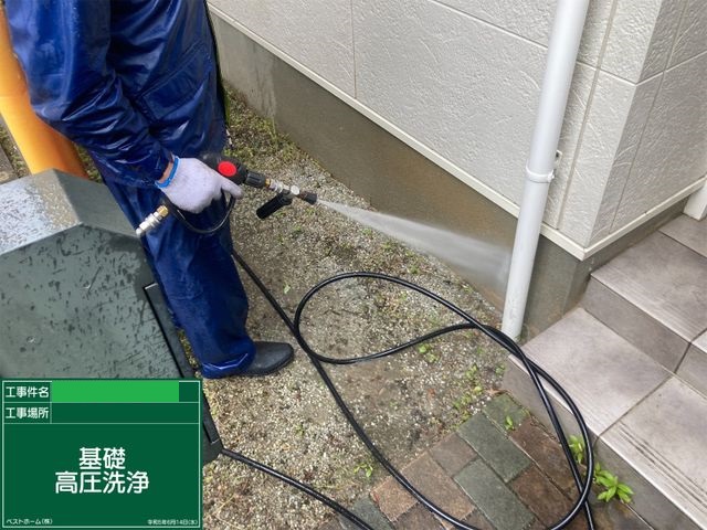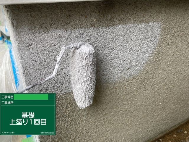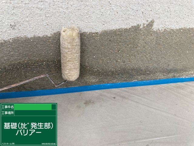 基礎専用塗料を塗布し、コンクリートのひび割れを防ぎます。